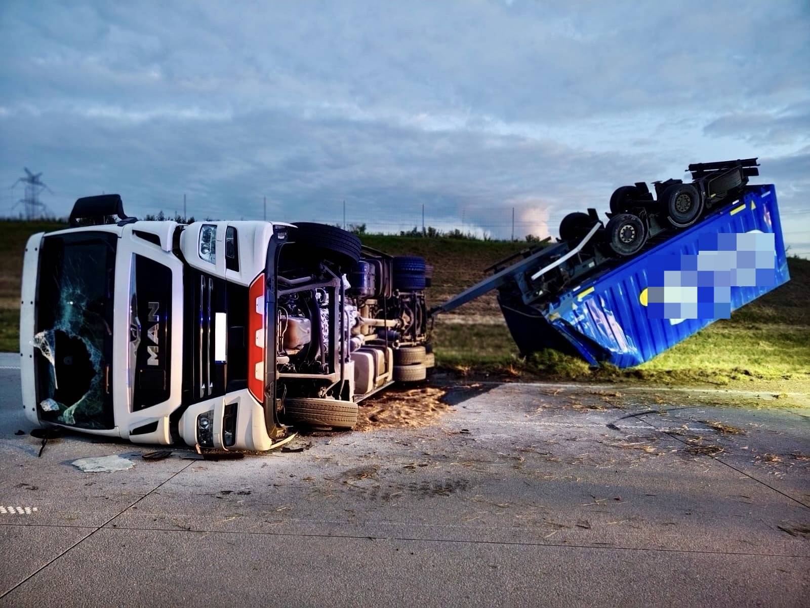 Do zdarzenia doszło kwadrans po godzinie 4.00 nad ranem. Według wstępnych informacji, pojazd przewrócił się częściowo na trasę, a przyczepa wpadła na pas zieleni. Jak przekazuje st. kpt. Marek Jeziorski z KP PSP Radomsko, kierowcy opuścili pojazd o własnych siłach jeszcze przed przybyciem służb ratunkowych i nie zgłaszali dolegliwości, w związku z czym nie wymagali pomocy medycznej.