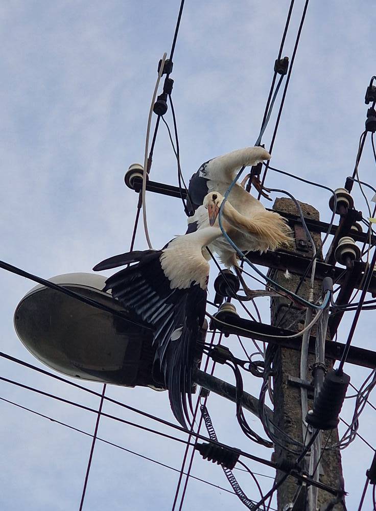 Dzięki szybkiej reakcji i współpracy z energetykami, zasilanie w rejonie interwencji zostało bezpiecznie odłączone, co umożliwiło strażakom przeprowadzenie akcji ratowniczej z użyciem drabiny mechanicznej. Bocian został uwolniony, jednak prawdopodobnie podczas lądowania doznał złamania nogi.