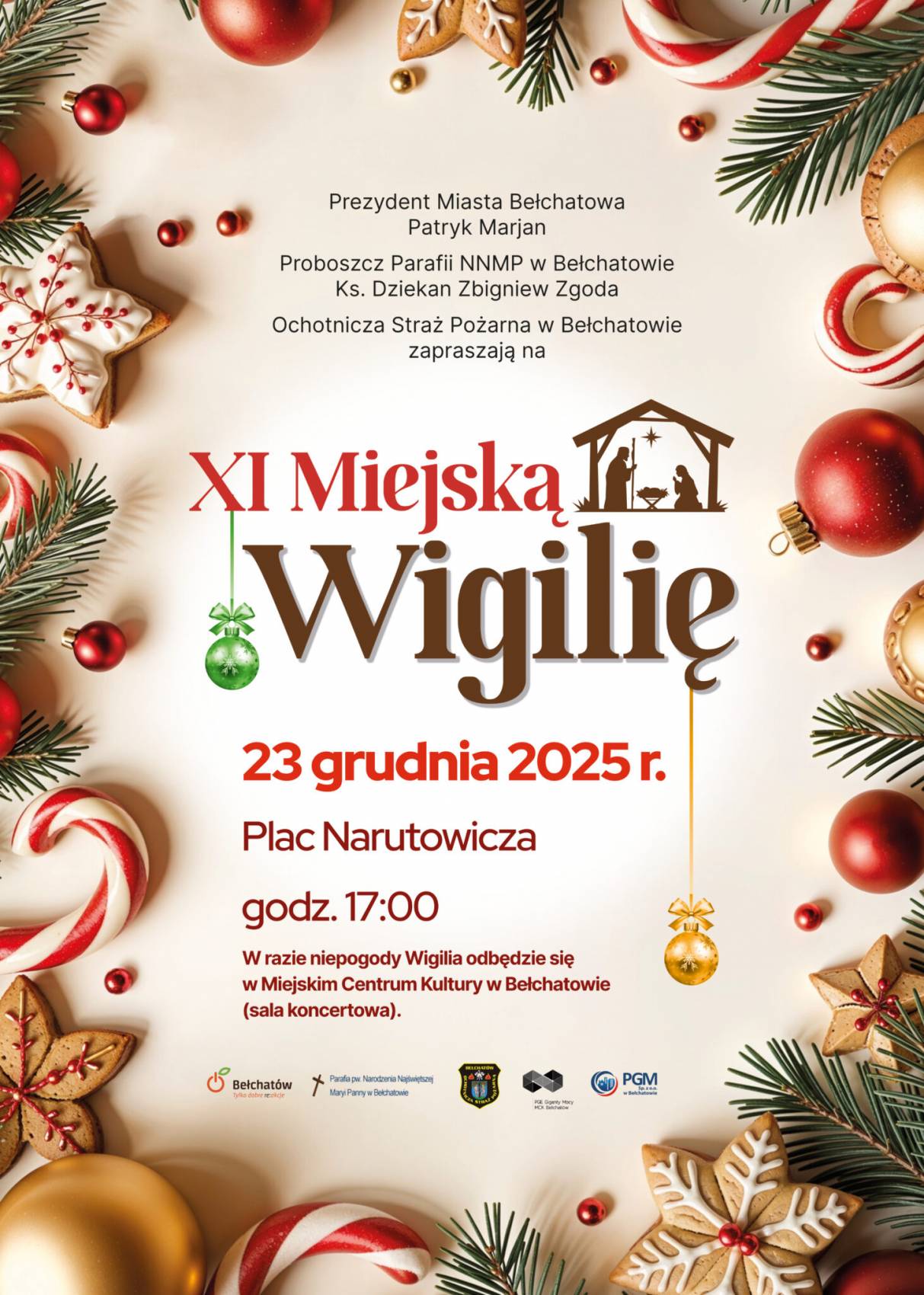 W przedświąteczny wtorek, 23 grudnia, na placu Narutowicza odbędzie się już jedenasta edycja Miejskiej Wigilii w Bełchatowie. To wyjątkowe wydarzenie, które na stałe wpisało się w grudniowy kalendarz miasta, pozwala mieszkańcom spotkać się, złożyć sobie życzenia, wspólnie pokolędować i poczuć atmosferę Bożego Narodzenia.