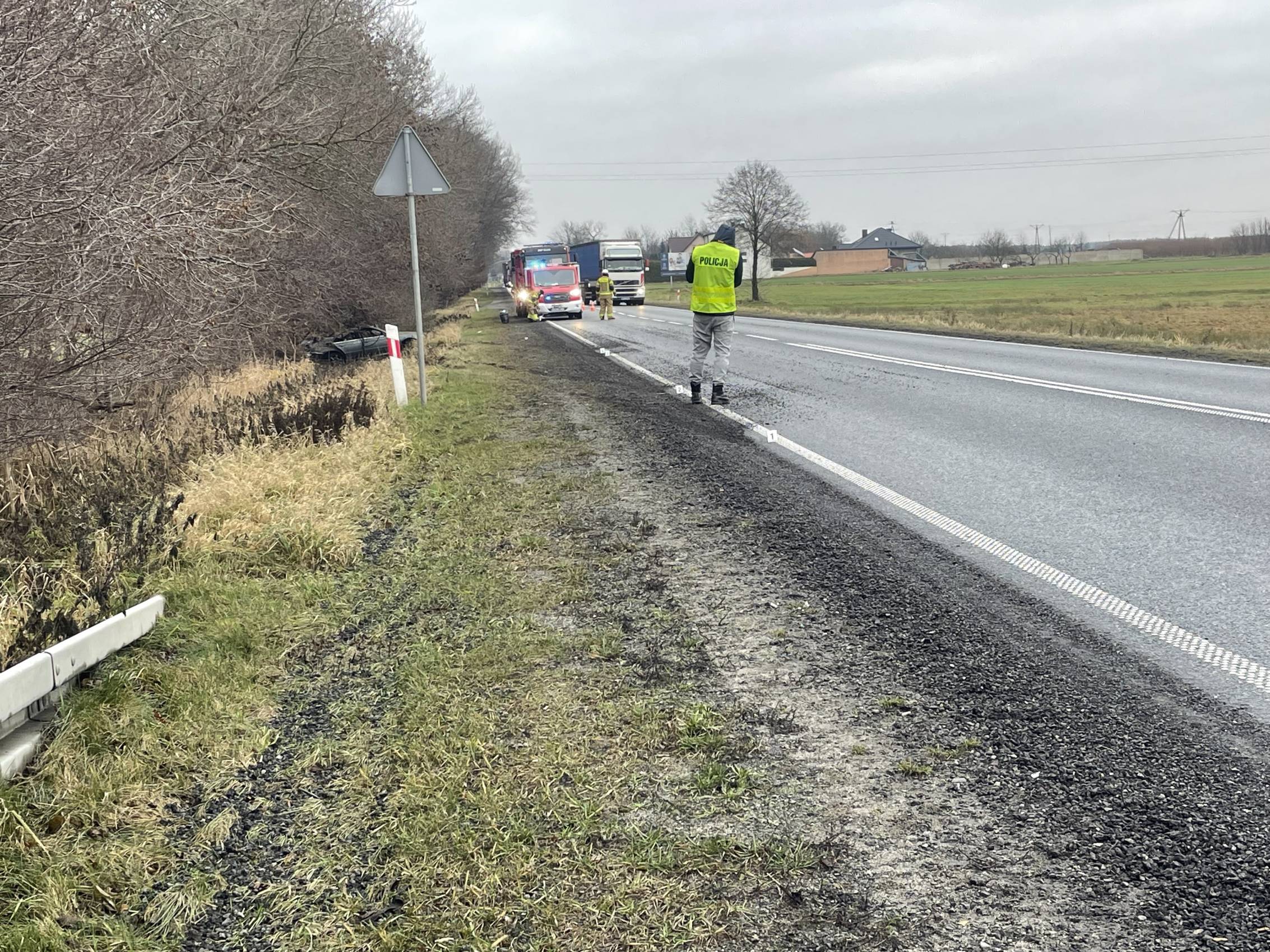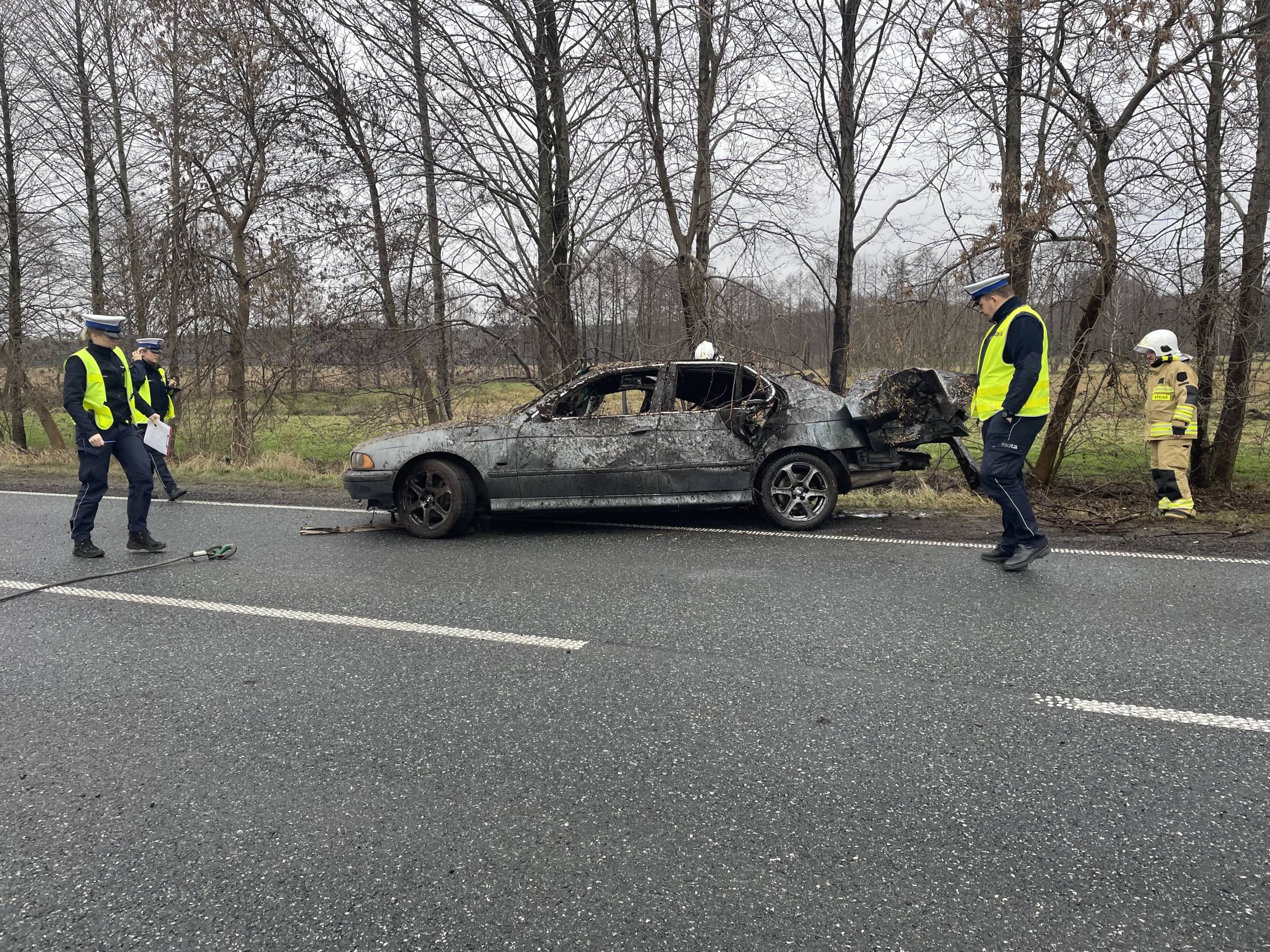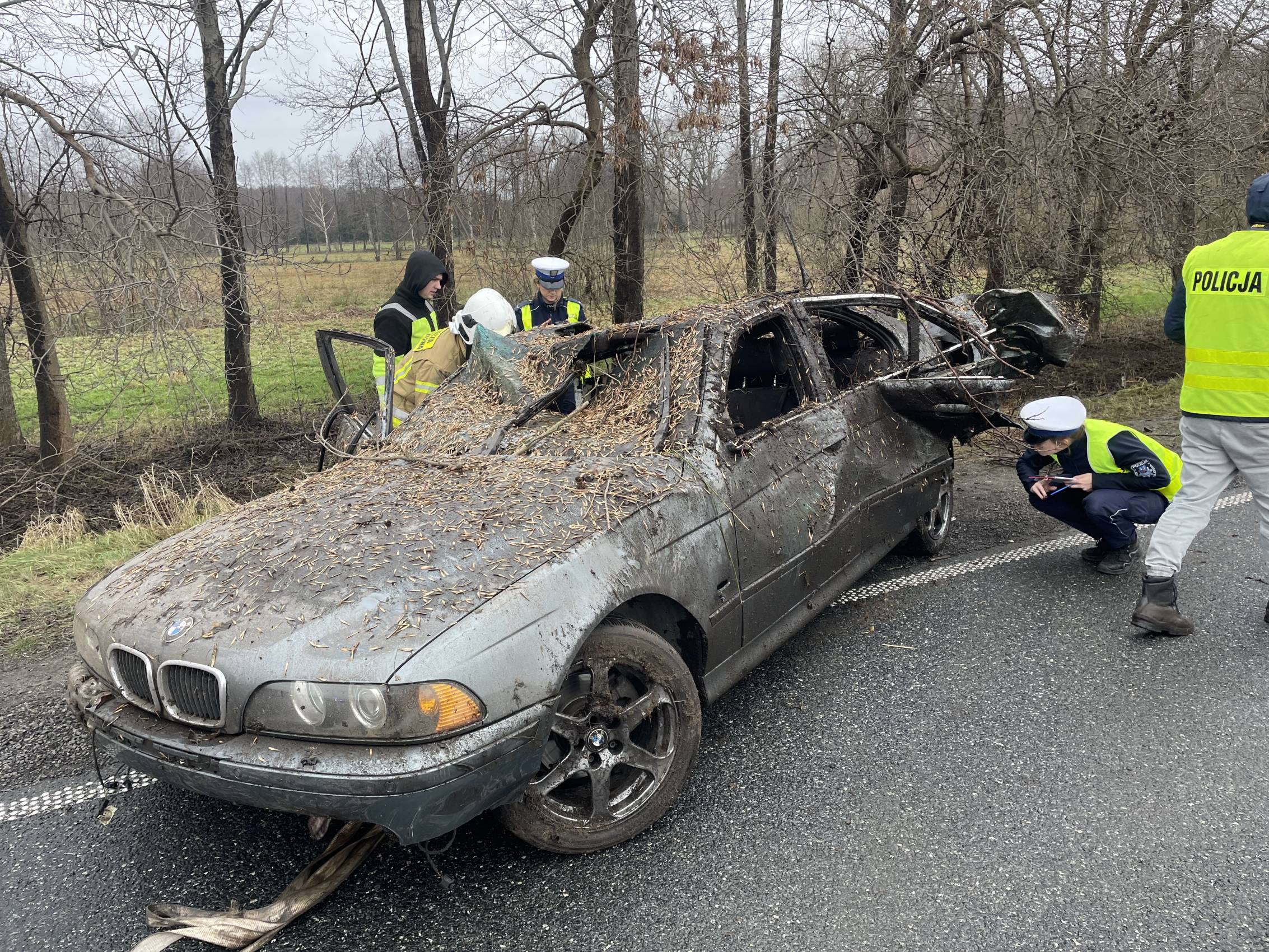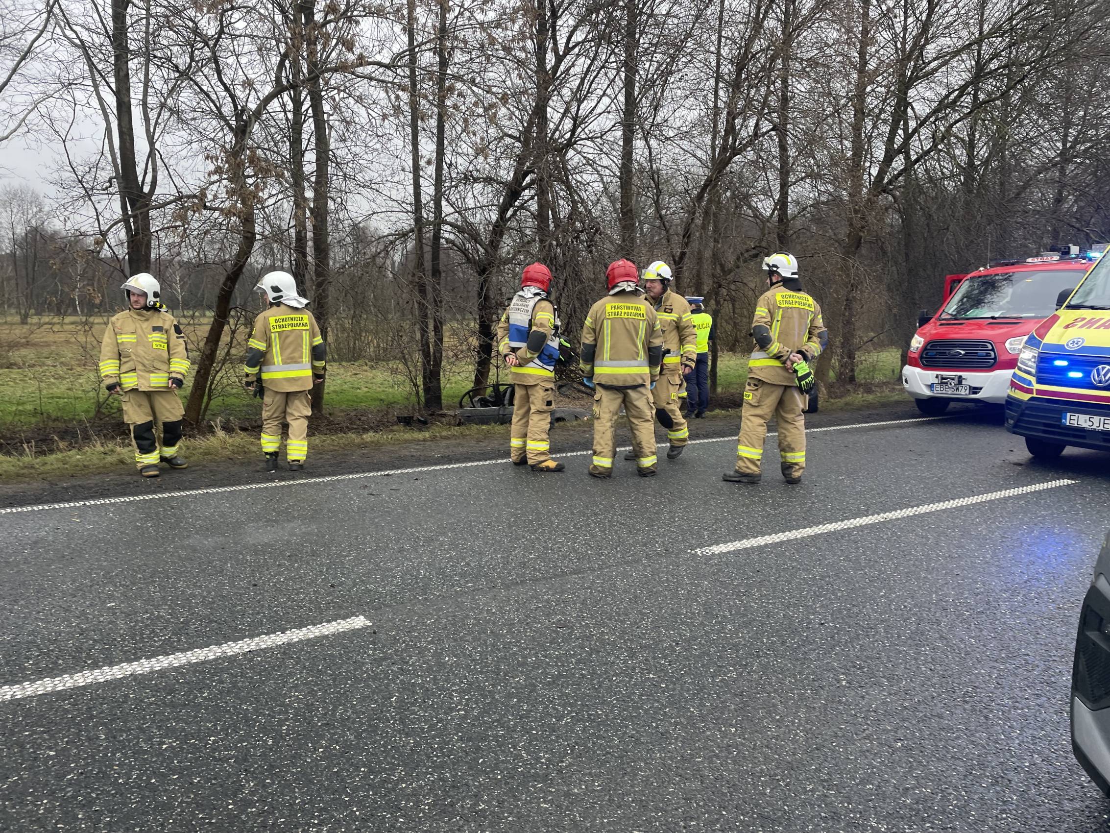 Na miejscu pracowali także funkcjonariusze policji, którzy prowadzili czynności mające na celu dokładne ustalenie przyczyn i okoliczności wypadku.