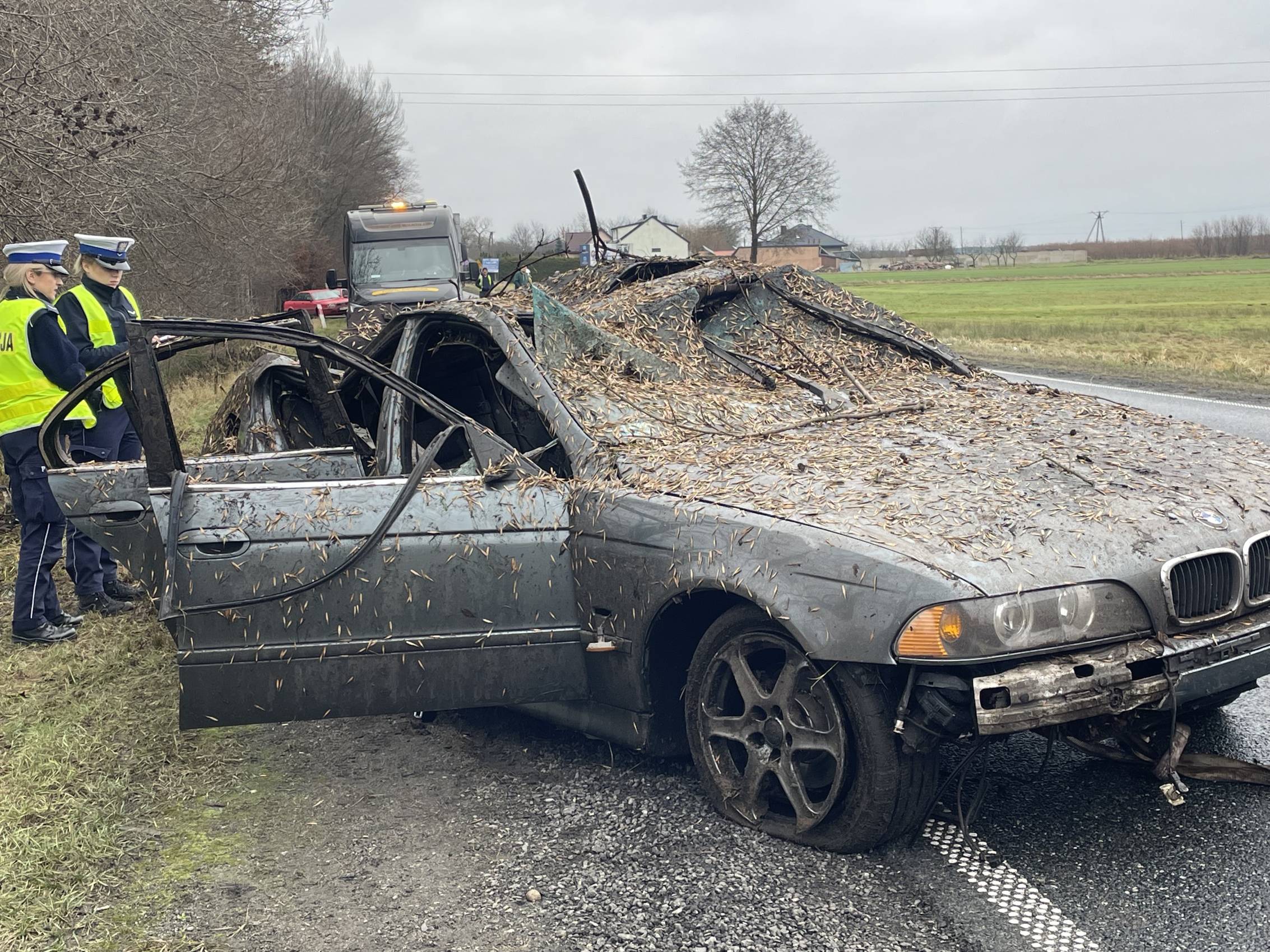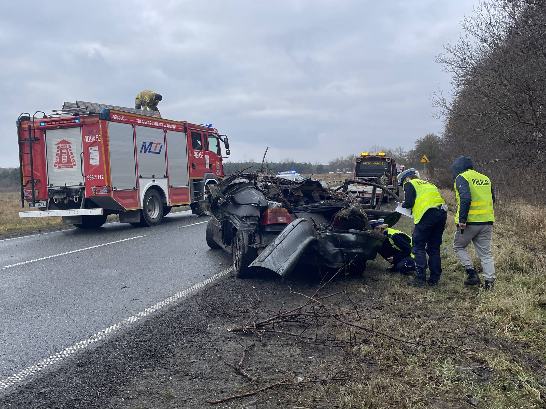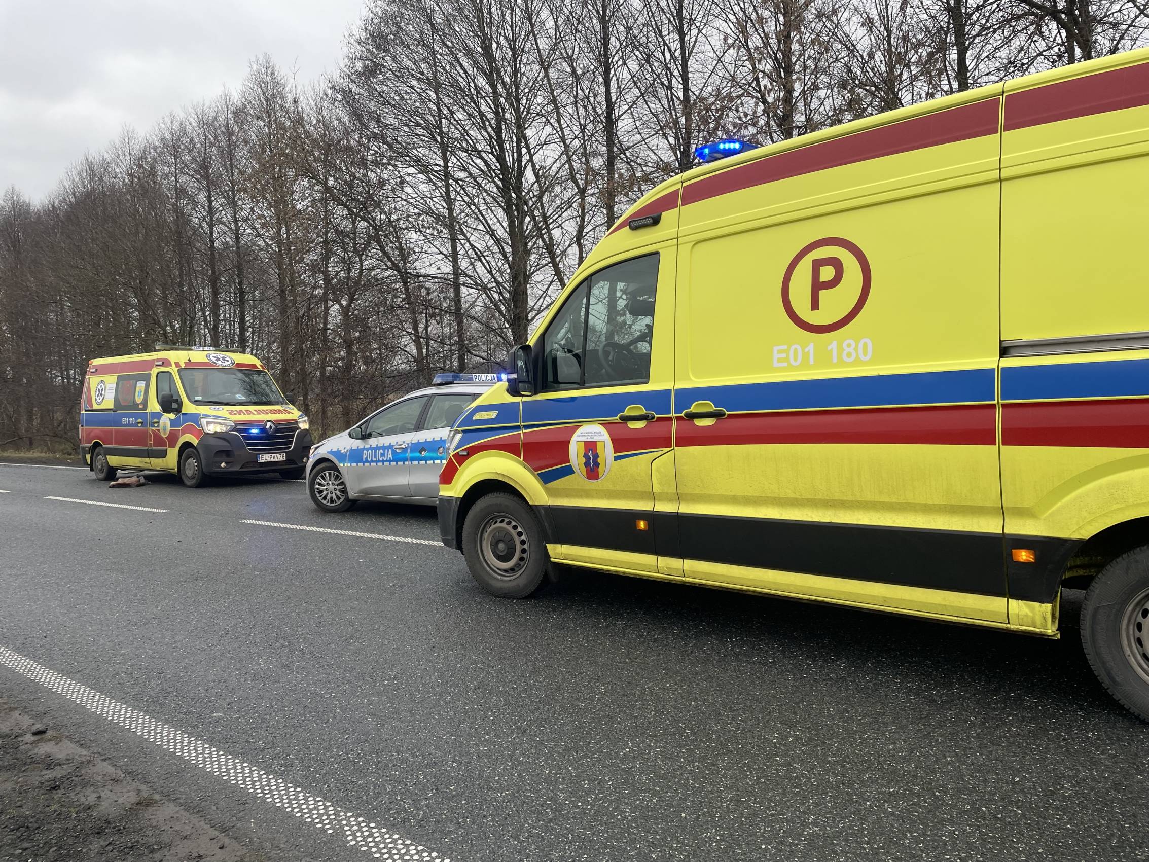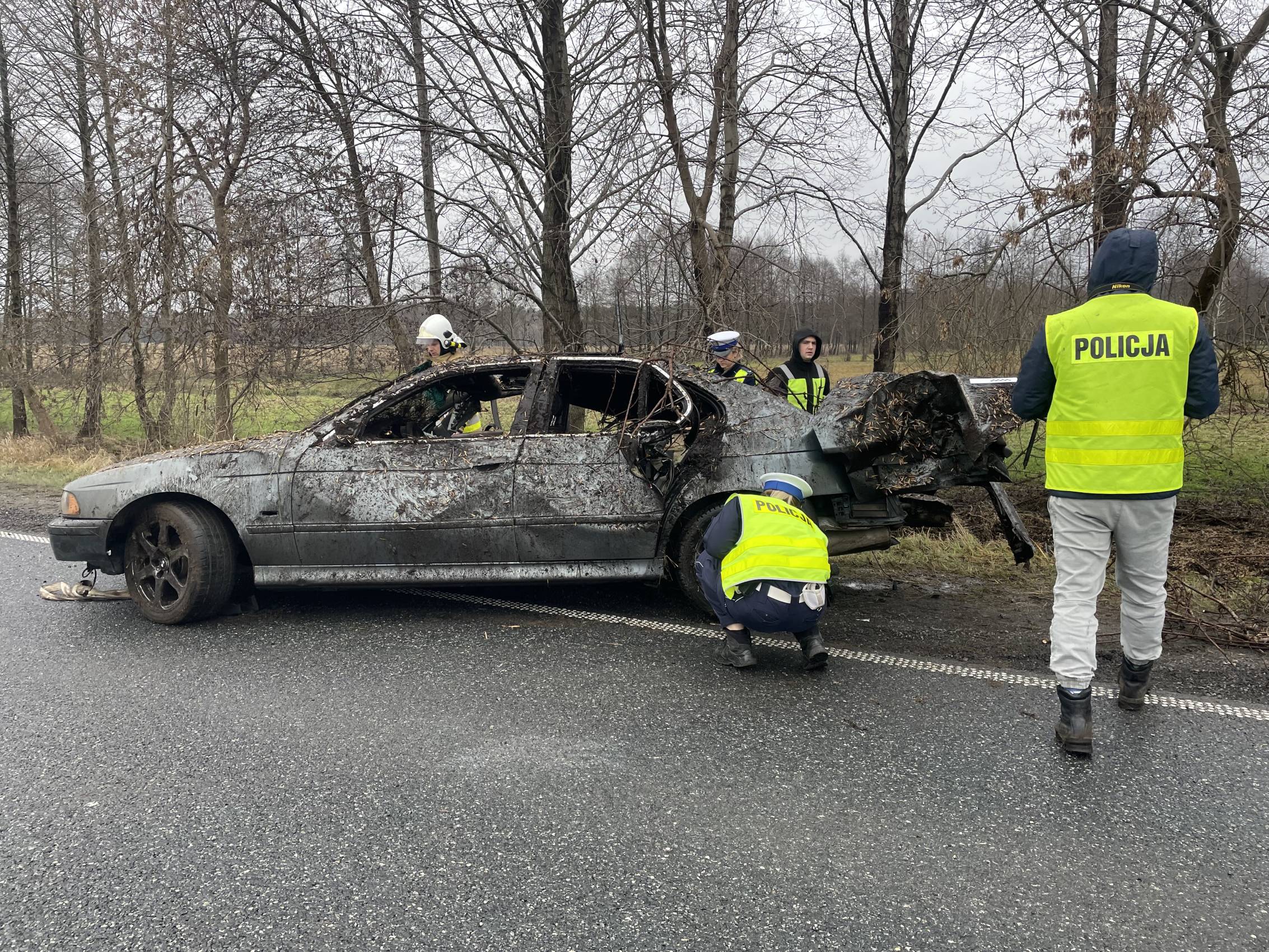 Na miejscu pracowali także funkcjonariusze policji, którzy prowadzili czynności mające na celu dokładne ustalenie przyczyn i okoliczności wypadku.