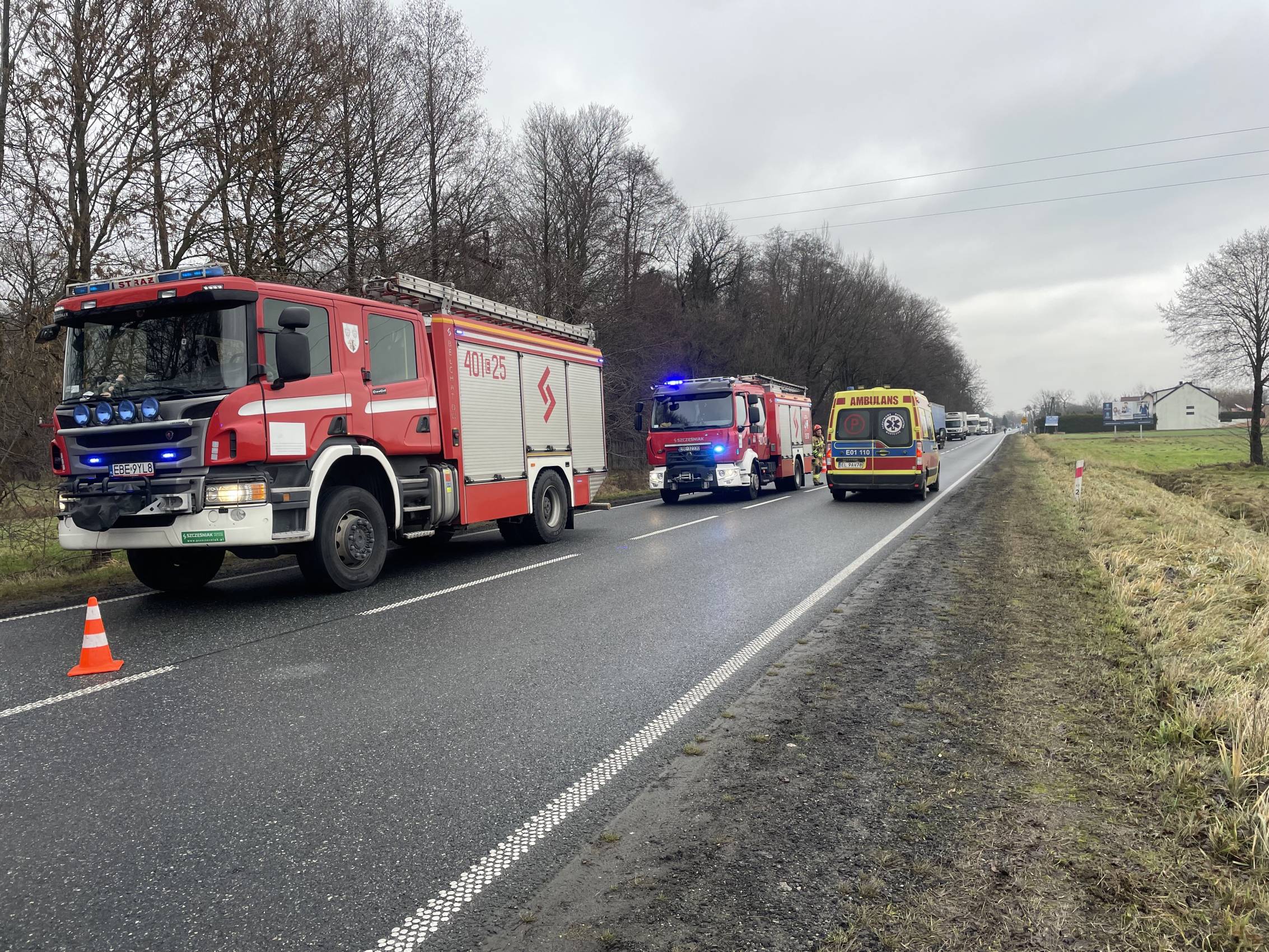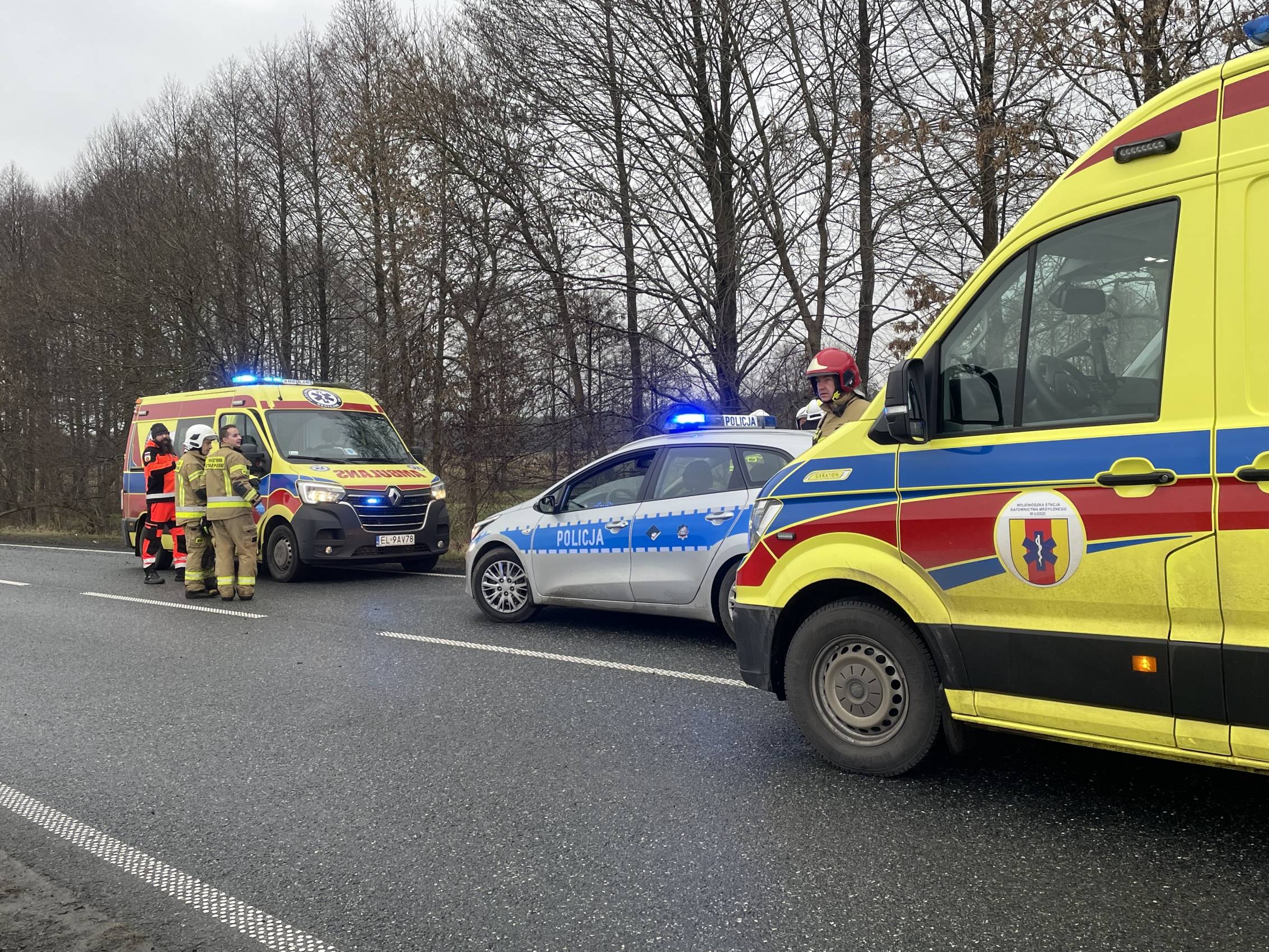 Zgłoszenie o wypadku wpłynęło do stanowiska kierowania Państwowej Straży Pożarnej w Bełchatowie o godzinie 9:24. Na miejsce zadysponowano dwa zastępy z JRG PSP Bełchatów oraz trzy zastępy Ochotniczych Straży Pożarnych – dwa z OSP Kluki oraz jeden z OSP Szczerców. Do działań skierowano również trzy zespoły ratownictwa medycznego oraz policję.