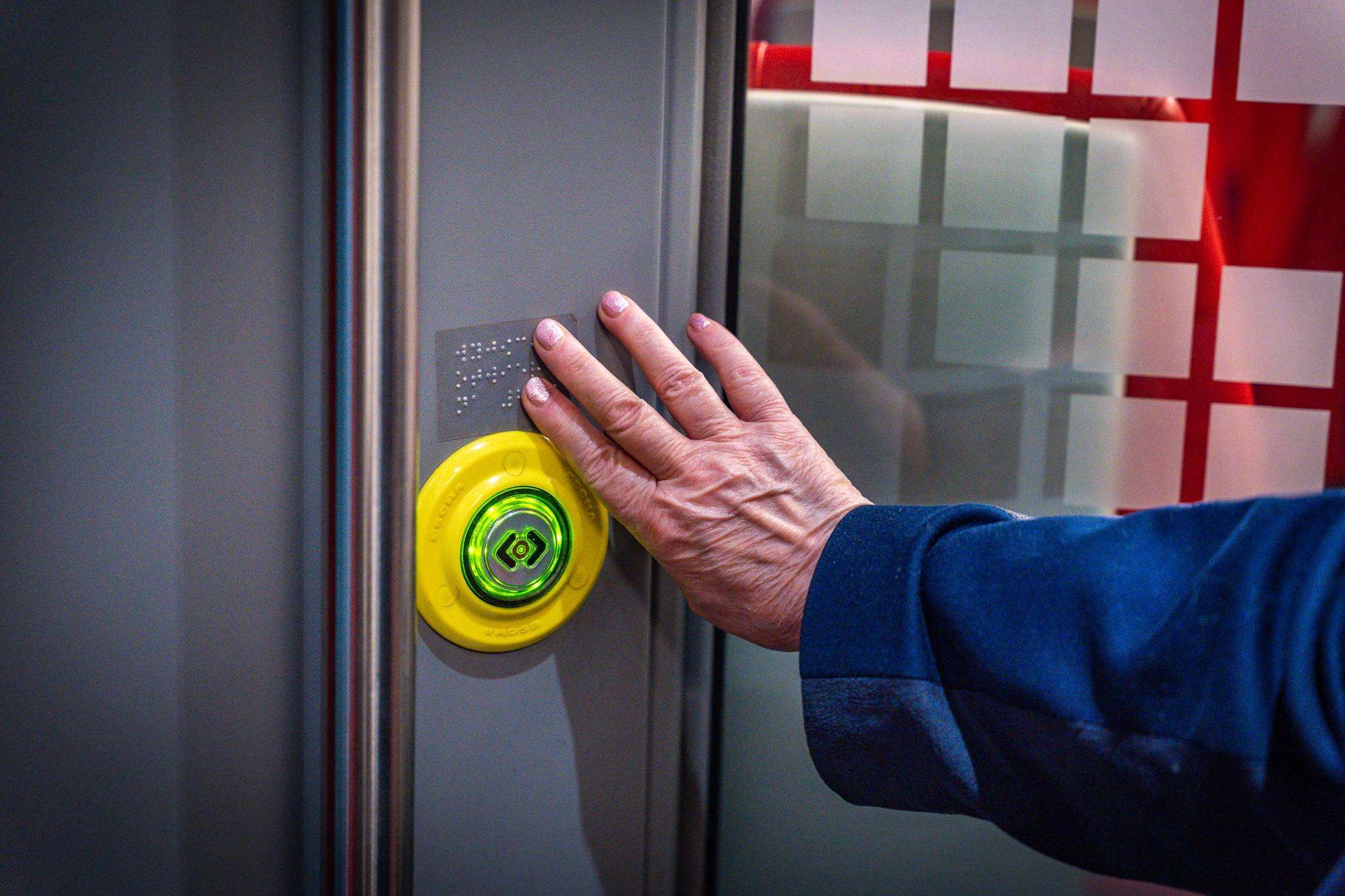 • kontrastowe oznaczenia, napisy w alfabecie Braille'a, dźwiękowa sygnalizacja drzwi,