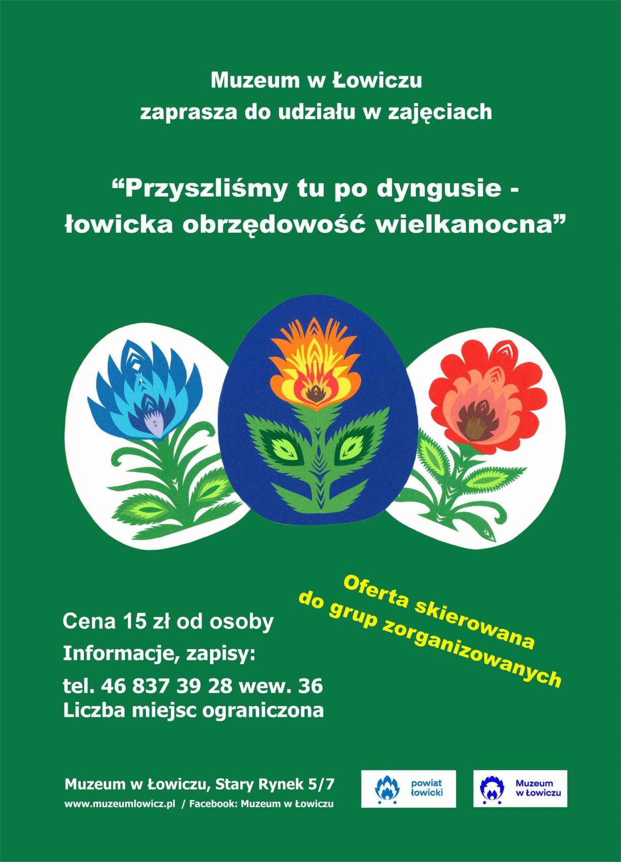 Uczniowie szkół nie tylko z powiatu łowickiego mogą zapisywać się do udziału w lekcjach o obrzędowości wielkanocnej. Pierwsze już ruszyły, terminy ustalane są indywidualnie. Zajęcia są podzielone na dwie części – najpierw jest wykład „Przyszliśmy tu po dyngusie", a potem praktyczne wykonywanie wielkanocnych dekoracji.