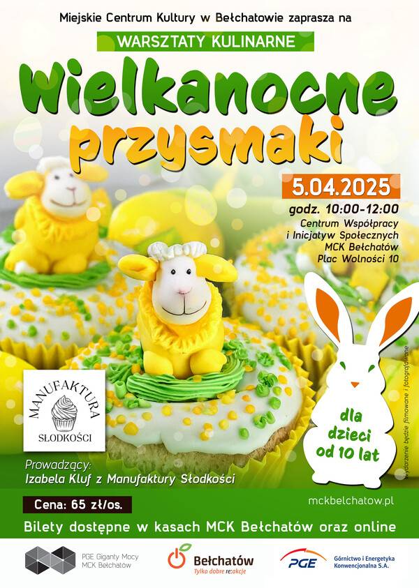 W Bełchatowie będzie można podejrzeć święta „od kuchni". To za sprawą warsztatów kulinarnych dla dzieci, które organizuje Miejskie Centrum Kultury. Uczestnicy (dzieci powyżej 10. roku życia) pod okiem Izabeli Kluf z Manufaktury Słodkości będą piec wielkanocne przysmaki: mini mazurki, słodkie babeczki i cukrowe owieczki.
