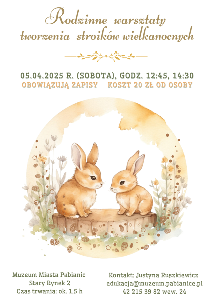 Muzeum Miasta Pabianic zaprasza na rodzinne warsztaty tworzenia stroików wielkanocnych. Podczas półtoragodzinnych zajęć uczestnicy będą mogli przygotować wyjątkowe dekoracje, które później trafią na ich wielkanocne stoły.