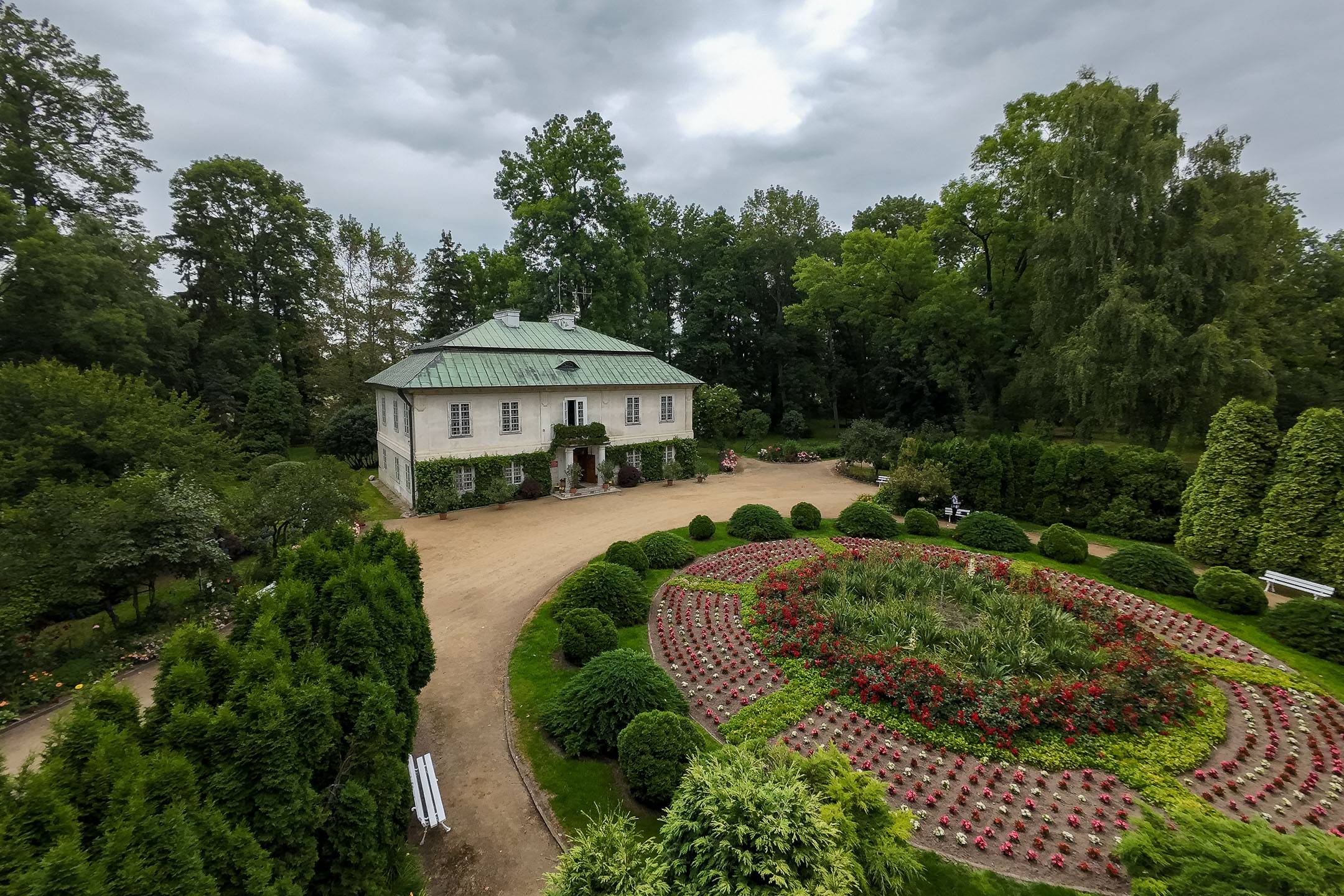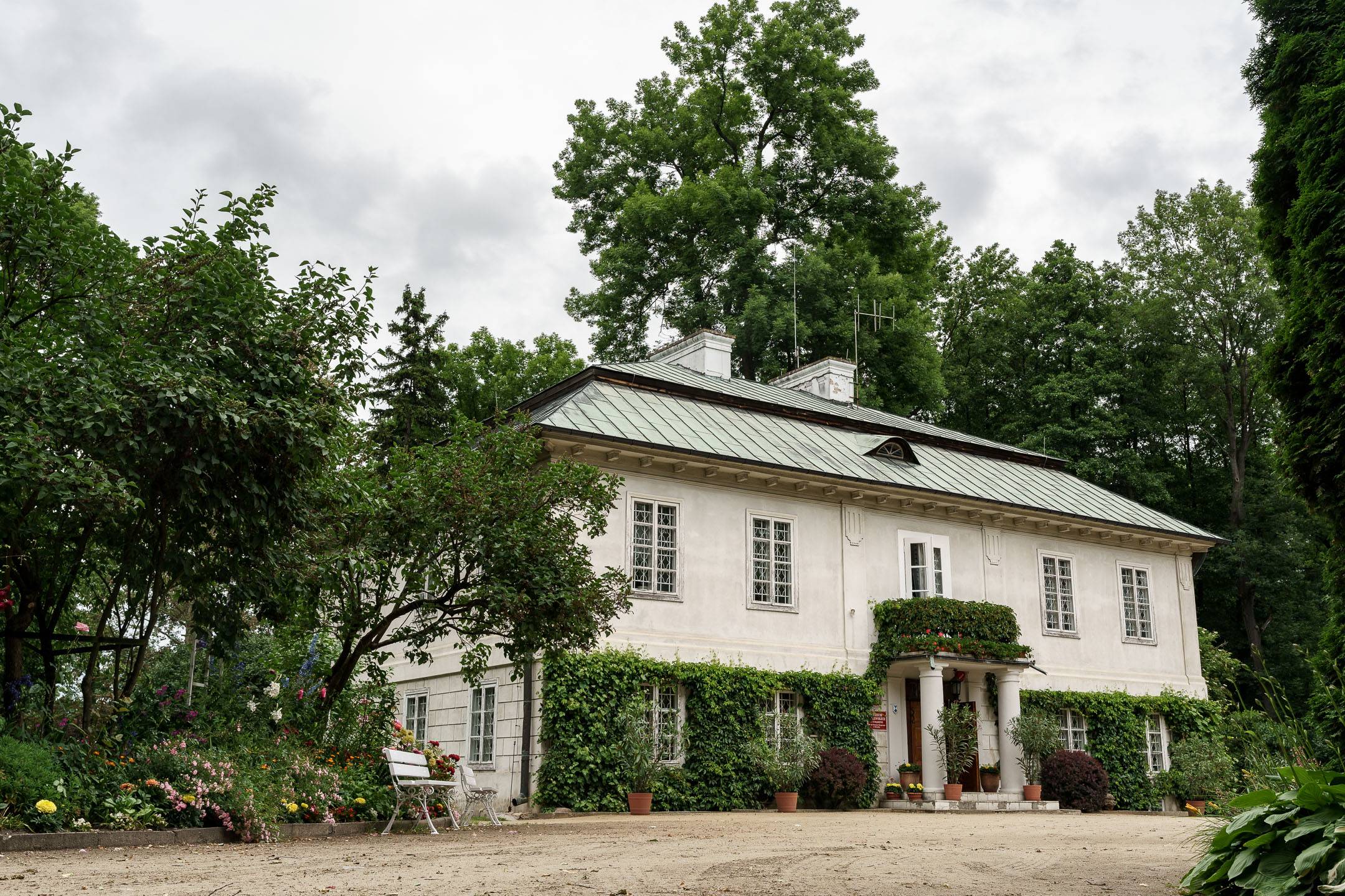 Swoje miejsce w historii ma także park otaczający muzeum – trzyhektarowy teren, który w 1995 roku został uhonorowany Złotym Medalem Ministra Kultury i Sztuki za wzorową rewitalizację. Dziś to nie tylko miejsce spacerów i plenerów, ale także przestrzeń pełna piękna i symboliki. Szczególną atrakcją ogrodu jest wspaniała kolekcja róż – zadbana, rozłożysta i niezwykle kolorowa. W sezonie letnim ogród rozkwita pełnią barw: od głębokich czerwieni i purpury po delikatne róże herbaciane, biele i kremy. Wśród kwiatowych kompozycji, drewnianych pergoli i zabytkowych drzew łatwo zatracić się w czasie, odnaleźć spokój i refleksję.