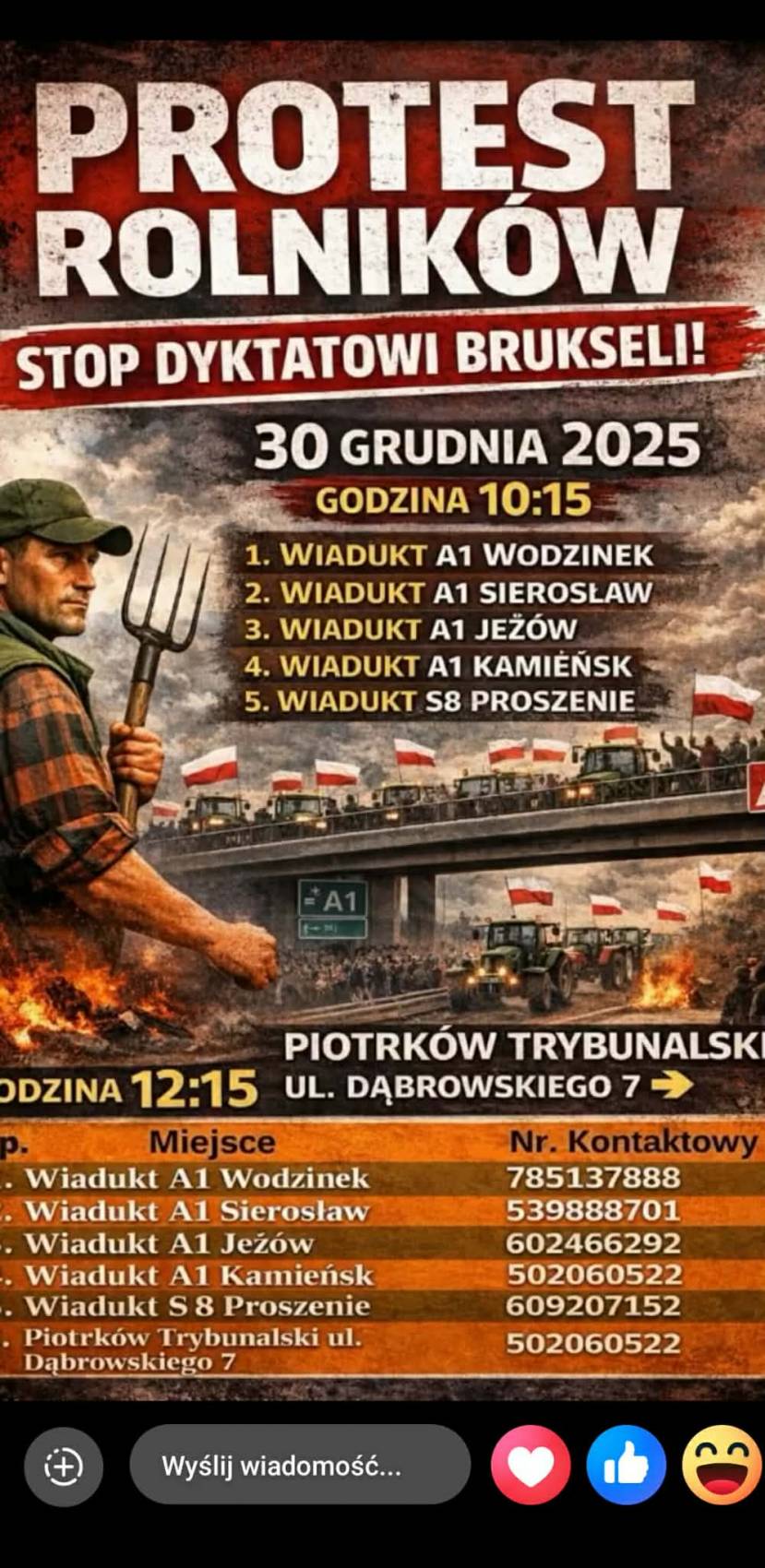 We wtorek, 30 grudnia, na drogach w całej Polsce ponownie pojawią się rolnicy protestujący w ramach Ogólnopolskiego Protestu Rolników. Akcja ma być wyrazem sprzeciwu wobec planowanej umowy handlowej pomiędzy Unią Europejską a krajami Mercosur, która – zdaniem organizatorów – może poważnie zagrozić polskiemu rolnictwu oraz bezpieczeństwu żywnościowemu.