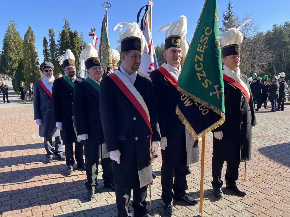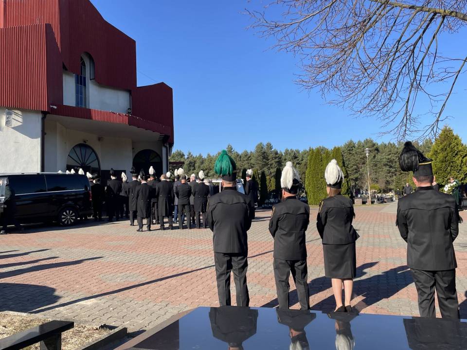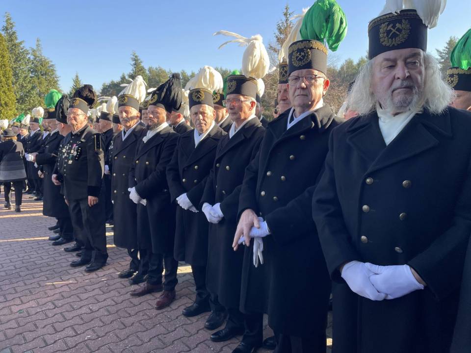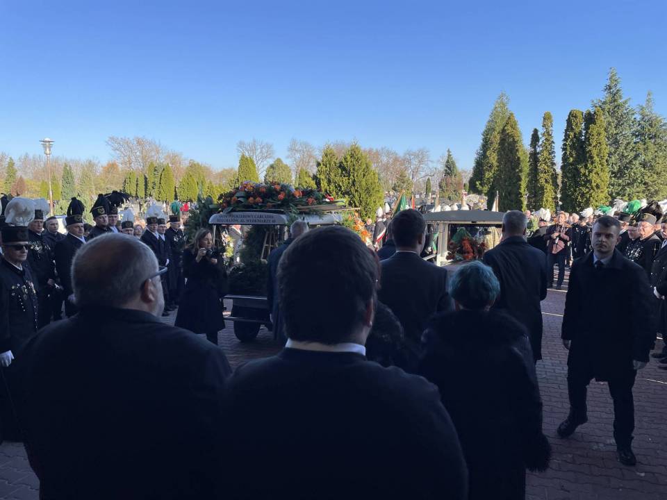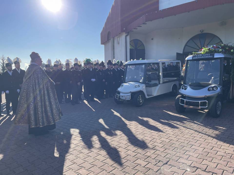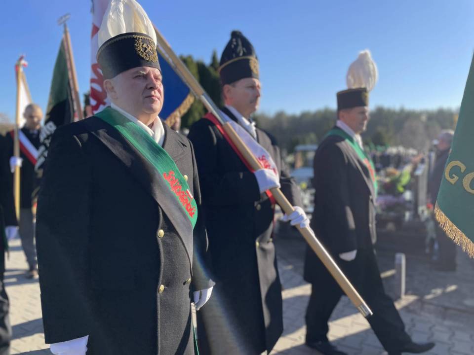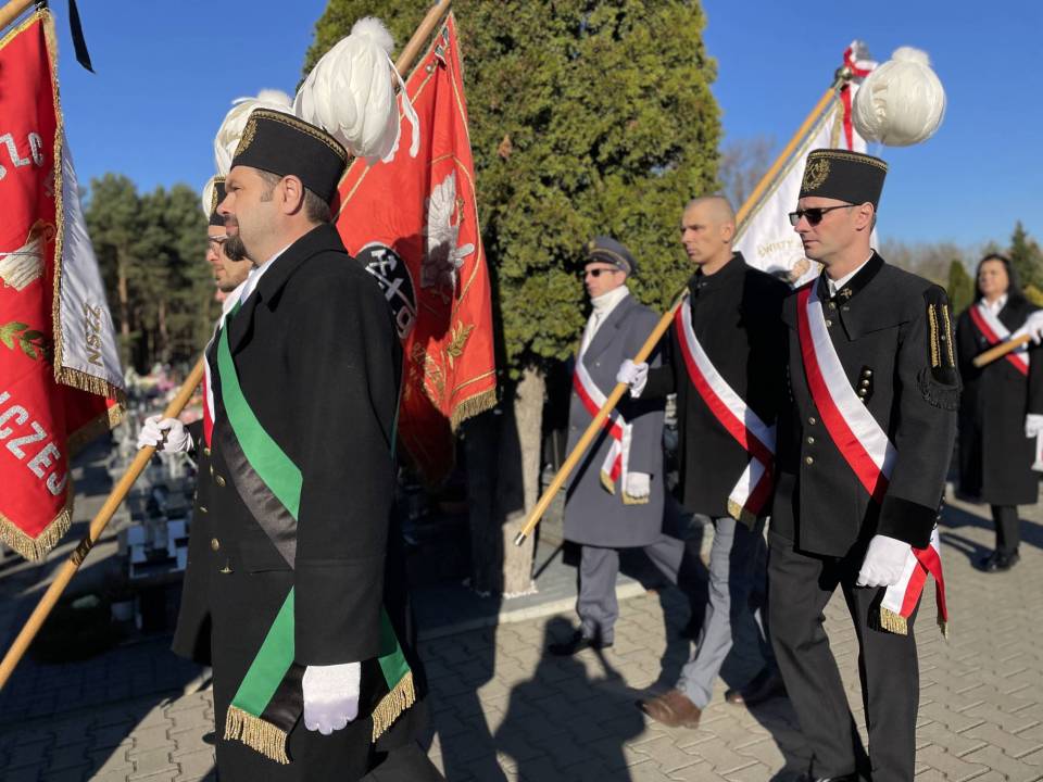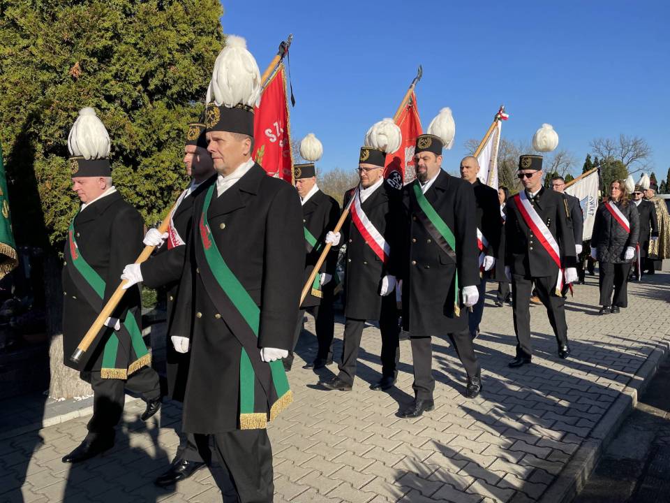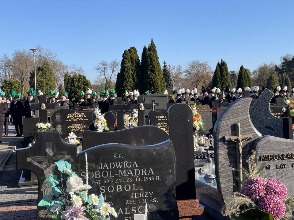 W ostatniej drodze towarzyszyła mu orkiestra górnicza, poczty sztandarowe i morze czarnych mundurów z zielonymi, białymi i czarnymi pióropuszami czako.