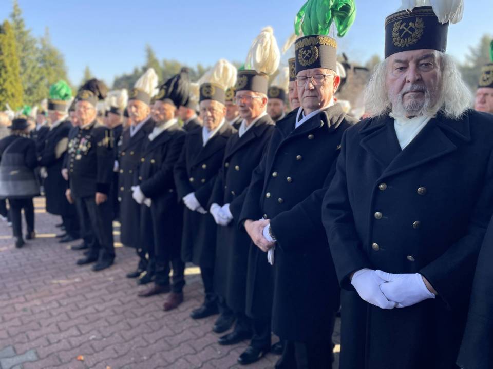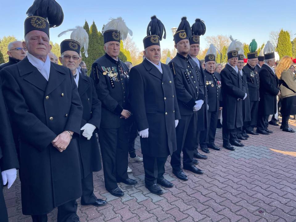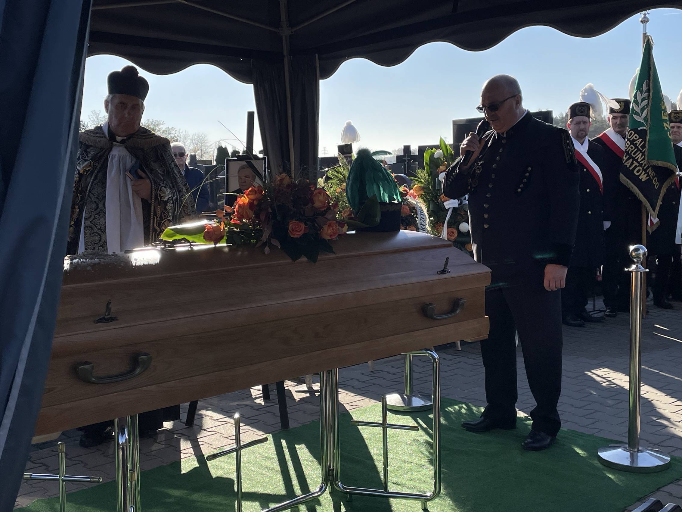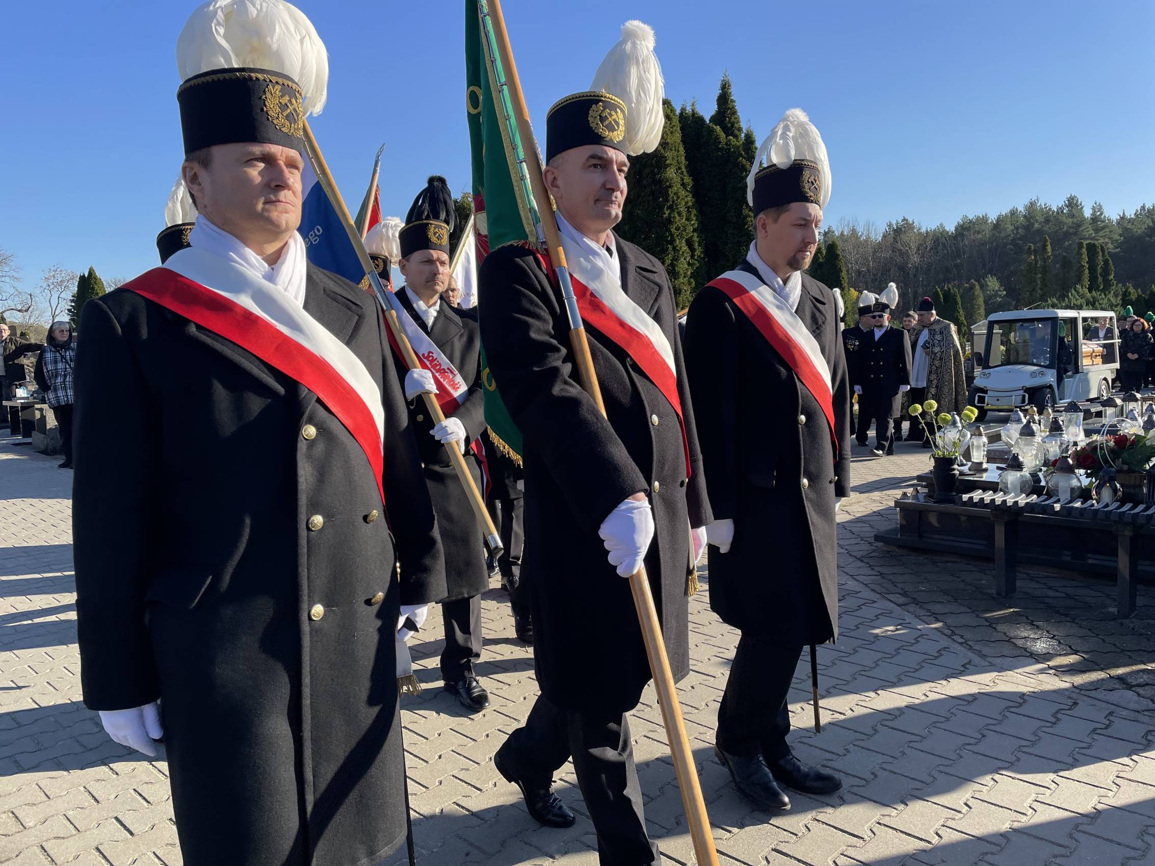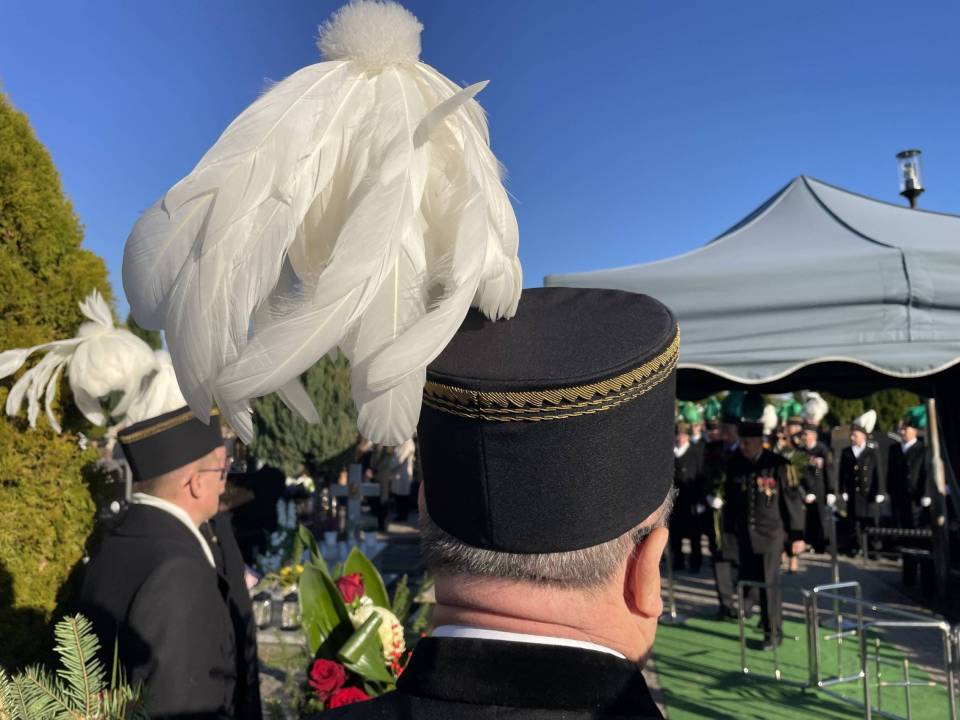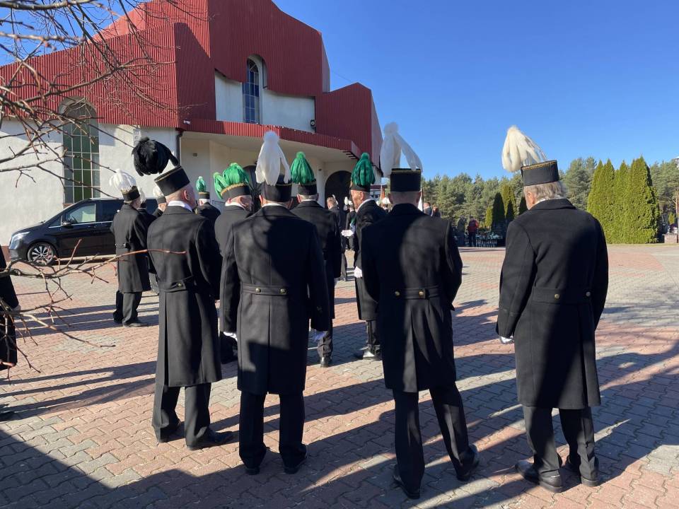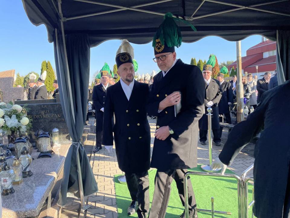 W ostatniej drodze towarzyszyła mu orkiestra górnicza, poczty sztandarowe i morze czarnych mundurów z zielonymi, białymi i czarnymi pióropuszami czako.