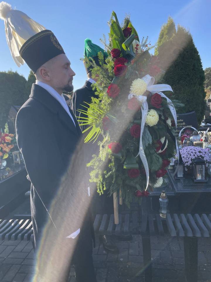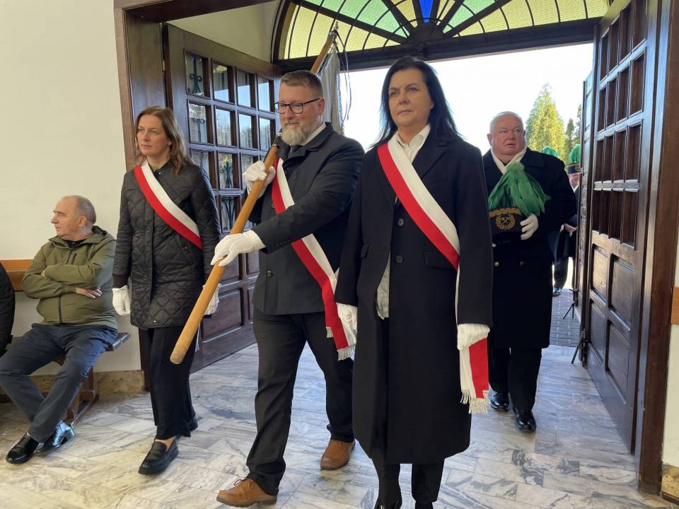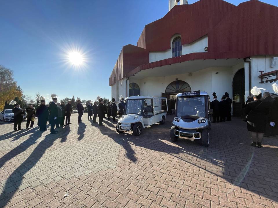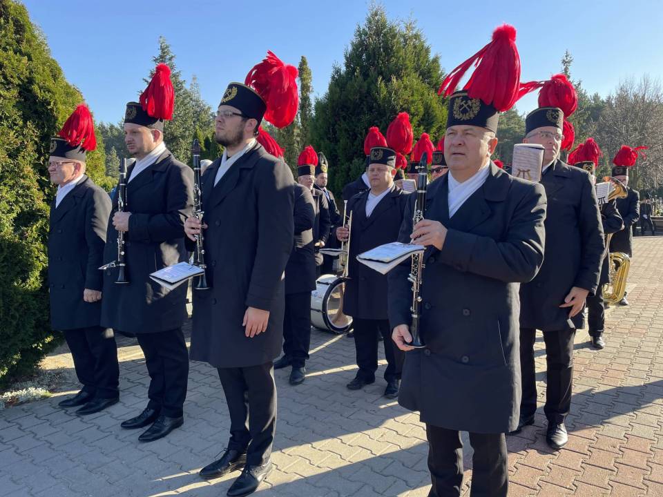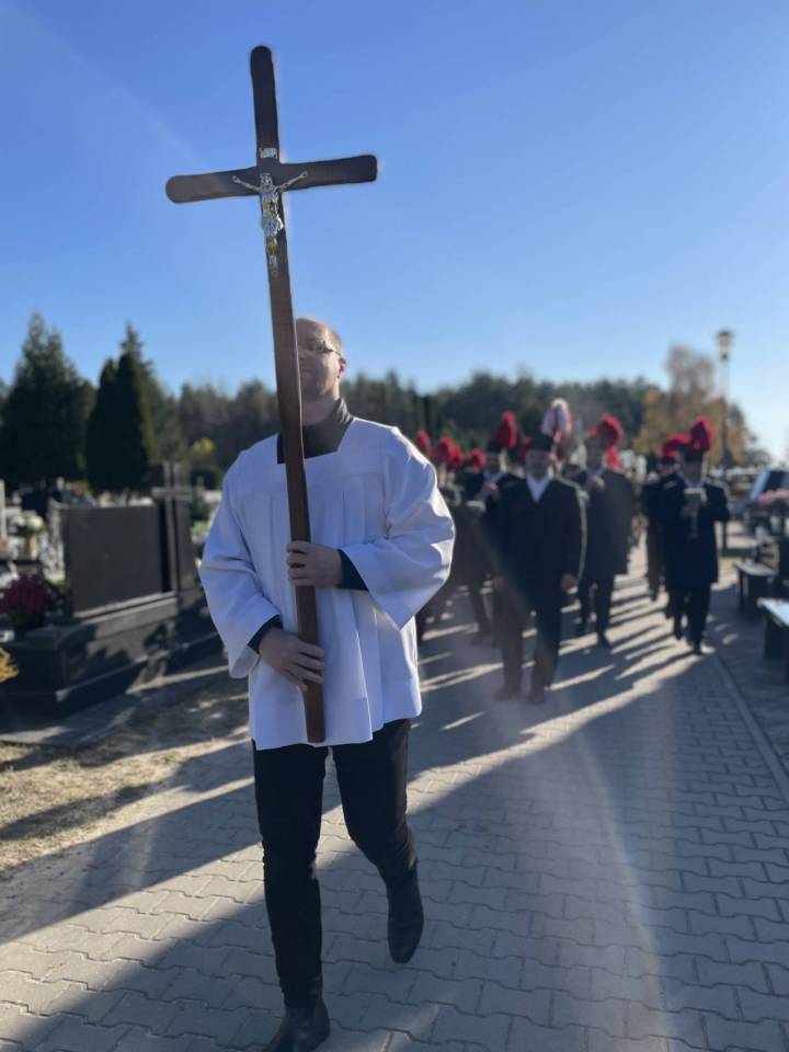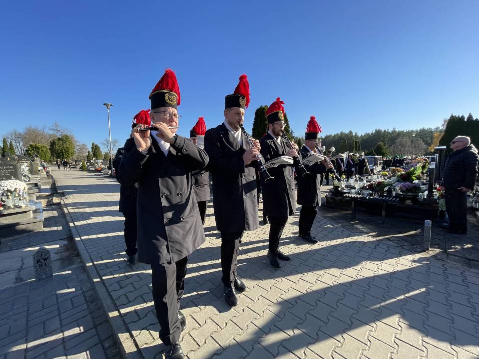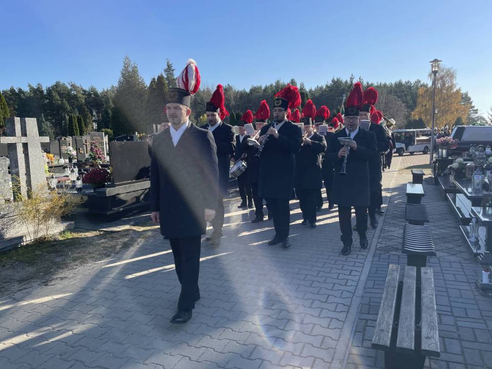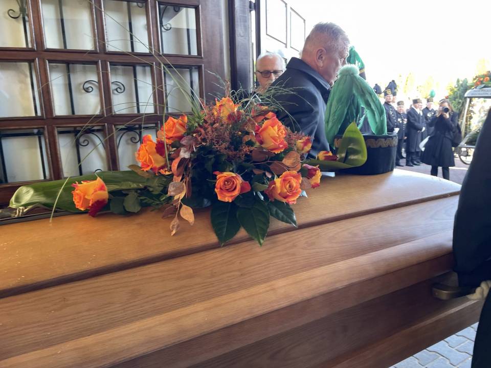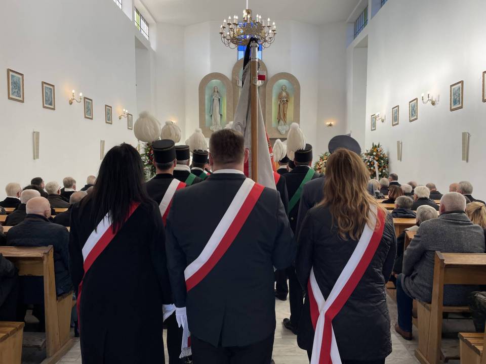 W ostatniej drodze towarzyszyła mu orkiestra górnicza, poczty sztandarowe i morze czarnych mundurów z zielonymi, białymi i czarnymi pióropuszami czako.