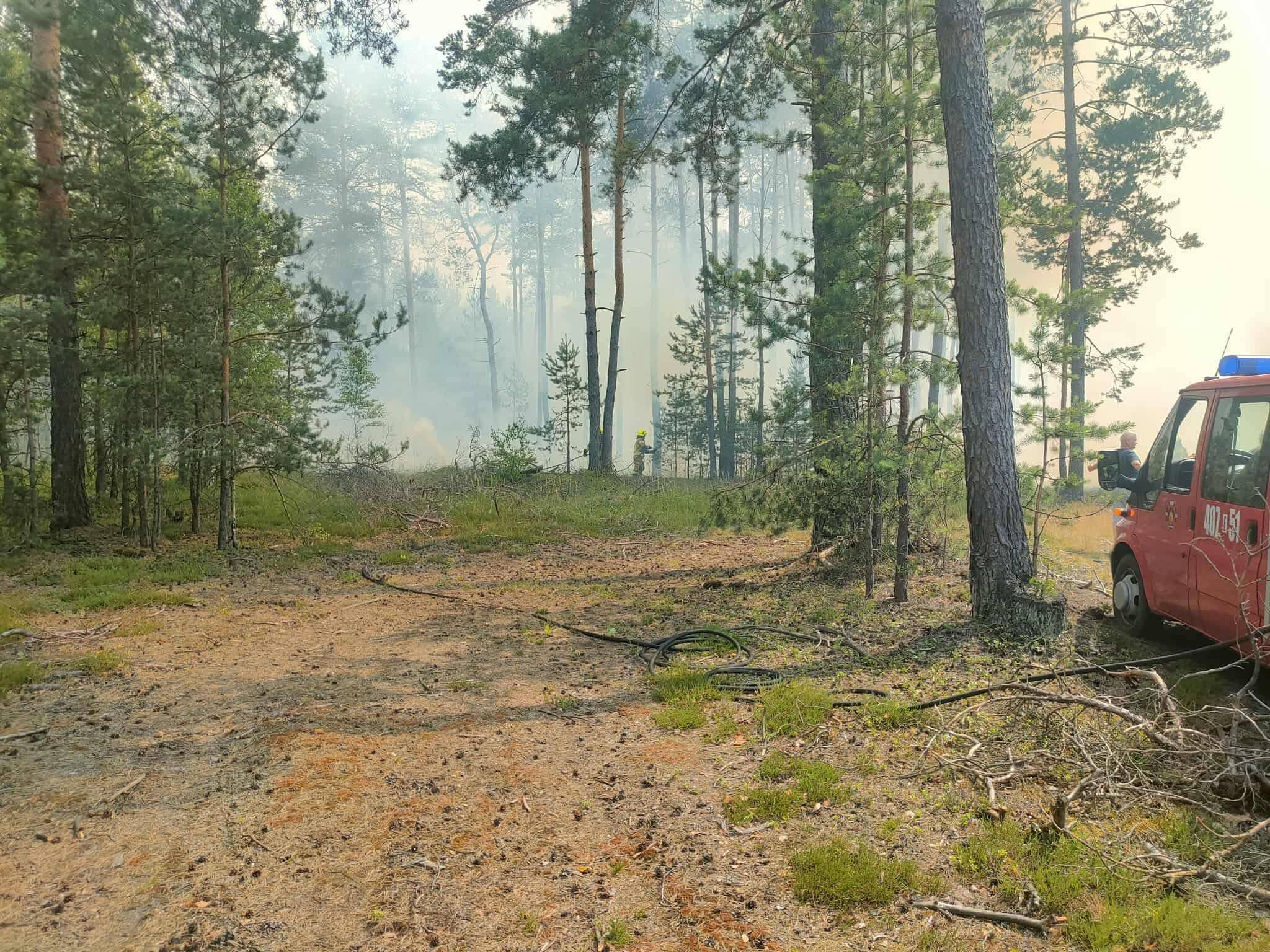 Na miejscu pracowało łącznie 10 zastępów straży pożarnej, w tym jednostki OSP z Kaszewic, Kluk (dwa zastępy), Kamienia, Grocholic, Łękawy oraz Bełchatowa. Do działań włączyła się również Jednostka Ratowniczo-Gaśnicza z Bełchatowa, dysponująca dwoma pojazdami. W trudnych warunkach, przy dużym zadymieniu i wysokich temperaturach, pomoc z powietrza zapewnił samolot gaśniczy udostępniony przez Nadleśnictwo.