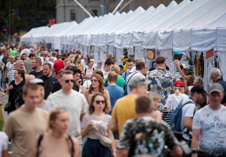 Wśród wystawców było wiele KGW oraz producentów regionalnej, tradycyjnej żywności. Ich stoiska kusiły pierogami z różnorodnym farszem, żurkiem na prawdziwym zakwasie, rzemieślniczymi serami czy domowymi przetworami. Smaki i aromaty przyciągały gości jarmarku a produkty oraz potrawy błyskawicznie znikały. - Wystawialiśmy się dzisiaj ze świeżonką, bigosem i pierogami z mięsem i kapustą, mamy też duży wybór ciast. Jest bardzo duże zainteresowanie, bardzo dużo chętnych, świeżonka już się skończyła – przyznał ok. godz. 16 Norbert Dudek z KGW Pod Lipami z Koła w pow. piotrkowskim. Gospodynie z KGW Chorki z pow. łęczyckiego do Łodzi przyjechały z prażokami, karkówką w sosie i żurkiem chorkowskim. Jak zdradziła Dorota Suchocz z koła, zupa jest robiona według bardzo starego przepisu przekazywanego z pokolenia na pokolenie. – Podstawą jest zakwas chorkowski z mąki żytniej z dodatkiem skórki chleba, kisi się go 7 dni – mówi.