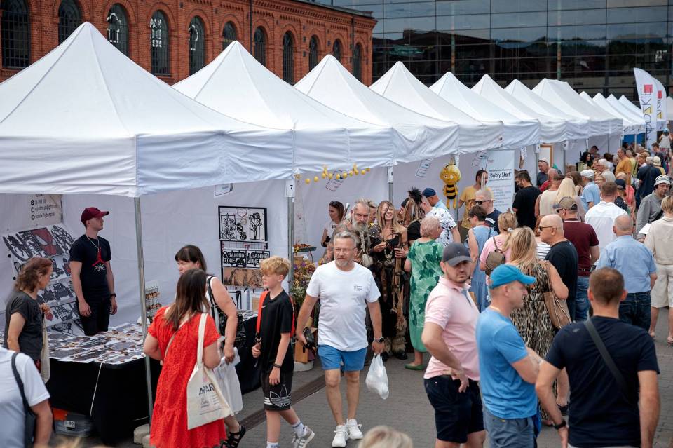 Jarmark wystartował w samo południe. Na rynku Manufaktury stanęły namioty wystawców m.in. twórców ludowych, rękodzielników i producentów tradycyjnej żywności. Była również bogata i bezpłatna strefa dla dzieci z dmuchańcami, watą cukrową i animacjami. A to wszystko przy dźwiękach regionalnej muzyki ludowej, bo na scenie – przed gwiazdą wieczoru, czyli Lanberry – zaprezentowało się aż 10 zespołów i orkiestr dętych z każdej części Łódzkiego.