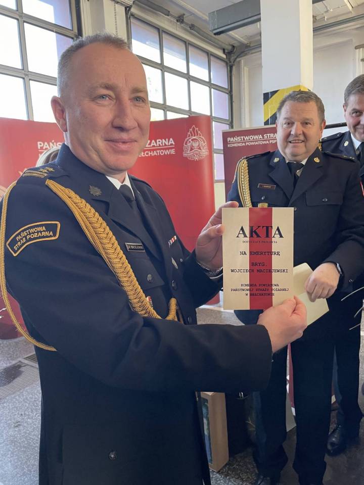 Po 27 latach służby mundur odwiesił na honorowe miejsce. W czwartek w siedzibie Komenda Powiatowa Państwowej Straży Pożarnej w Bełchatowie odbyła się uroczysta zbiórka z okazji przejścia na emeryturę bryg. mgr. inż. Wojciecha Maciejewskiego - strażaka, oficera, przełożonego i człowieka, który przez blisko trzy dekady współtworzył historię bełchatowskiej komendy.
