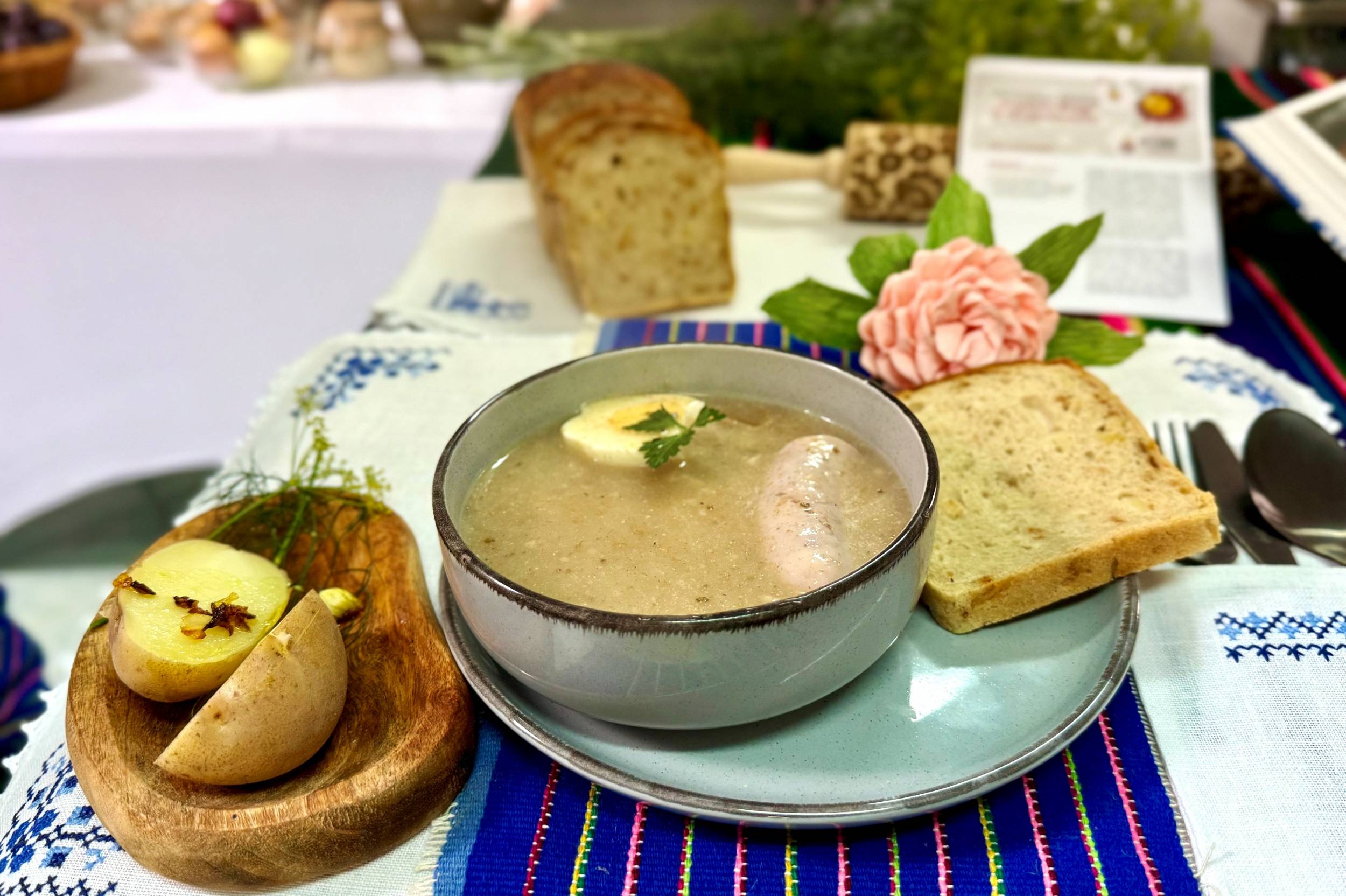 Jest odpowiednio kwaśny i idealnie gęsty, a dodatkowo jego smak podbija podanie - żur opoczyński jest serwowany ze śmietaną, skórczokami, czyli ziemniakami gotowanymi ze skórką i z przesmażaną cebulką oraz rzemieślniczym chlebem.